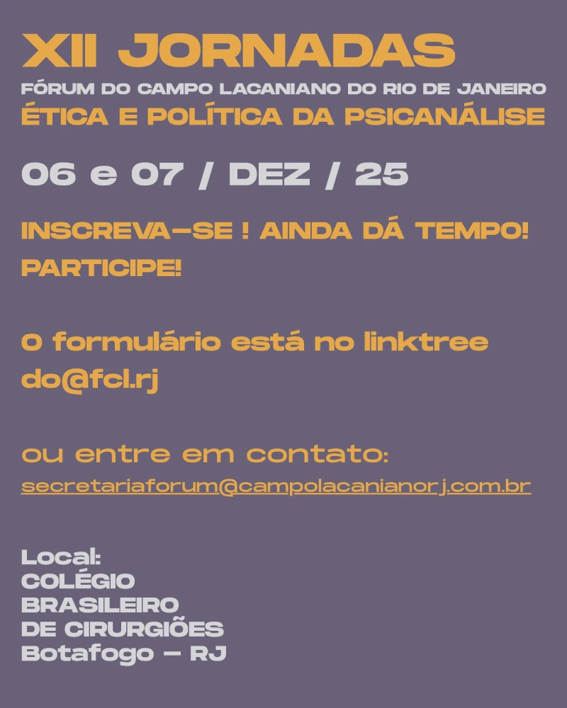 O Fórum do Campo Lacaniano – Rio de Janeiro (FCL-RJ) constituiu-se em agosto de 1998 como um espaço de reflexão crítica do movimento psicanalítico, articulado a outros Fóruns do Campo Lacaniano, em nível nacional e internacional. Em seu seio, deu nascimento a Formações Clínicas do Campo Lacaniano (FCCL-Rio), fundadas em março de 1999, e que, desde então, albergam o FCL-RJ. Em novembro de 1999, foi fundada a Internacional dos Fóruns (IF) integrada pelo FCL-RJ. Em dezembro de 2001 foi criada a que hoje é a Escola de Psicanálise dos Fóruns do Campo Lacaniano, em Paris, e suas atividades no Rio de Janeiro foram assumidas pelo FCL-RJ. Em outubro de 2019, o FCL-RJ passou a integrar nacionalmente a Federação dos Fóruns do Campo Lacaniano, ou Escola de Psicanálise dos Fóruns do Campo Lacaniano – Brasil. Em consequência, o FCL-RJ albergado por FCCL-Rio até então, passa a partir desta data protagonizar as atividades fundamentais na transmissão, ensino e pesquisa da psicanálise na cidade do Rio de Janeiro, exigindo com isso a revisão de nosso Regulamento. Formações Clínicas do Campo Lacaniano – Rio de Janeiro, passa agora a integrar o Fórum do Campo Lacaniano – Rio de Janeiro como um de seus setores, como Formações Clínicas.